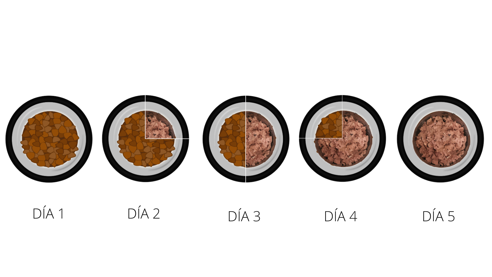 TIP: Si haz notado que tu mascota es muy sensible de estomago, no dudes es alargar el proceso de transición y durar dos o tres días en cada paso para así asegurar que la transición sea mas sutil. De esta manera, le das el tiempo a tu mascota para asimilar el cambio de alimentación.