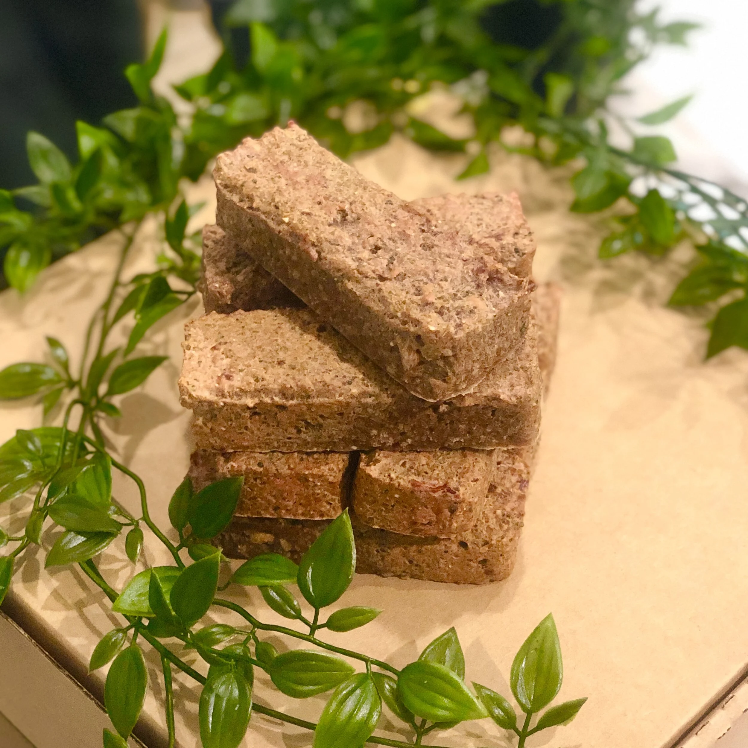 La comida viene congelada en ladrillos/barritas de 100g. Depende la presentación depende la cantidad de ladrillos que contenga la caja. Se debe mantener las barritas congeladas si no se vayan a consumir para así poder mantener la calidad ya que es carne cruda.